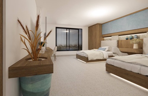 Raw, noble materials such as teakwood, volcanic stone, and handwoven rattan have been curated with intention, allowing each space to speak with quiet beauty. A soft, coastal-inspired palette of limestone white, sand beige, and gentle grey-blue mirrors the landscape beyond.