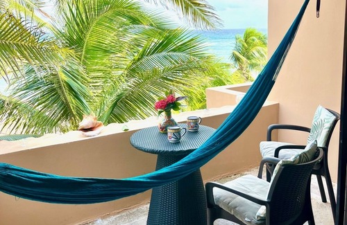 Amazing Sea Views, 2 Large Terraces w Hammocks, King Bed | Condo in Aventuras Akumal