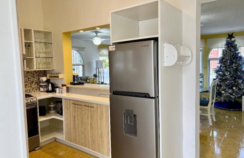Your Cozumel getaway awaits at this lovely 2-bedroom house. One bedrooms feature a king size bed, The second bedroom a bunk bed (with 2 fullsize mattesses) and a single futon, ensuring a comfortable stay for all guests. With 2 bathrooms equipped with a hair dryer and shower, Convenience is key: Located at downtown only 3 blocks from the ocean, 1 block to the biggest supermarkets and cinema, 1 block to the park and main Church, 1 block to the pickleball courts and gym, restaurants, bars, diving shops and drudgstores.