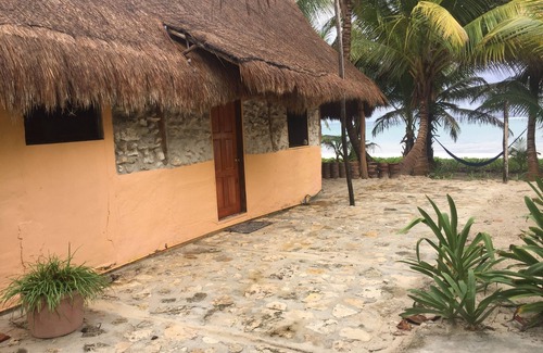Casa Caribe is a beachfront bungalow, just steps away from the beautiful Caribbean Sea. Our quiet piece of paradise gives you a white-powdery beach to walk along, wonderful swimming area and a reef within swimming reach of the beach. Our property is 11.5 kilometers (7 miles) south of Mahahual, away from the cruise ship crowds. Casa Caribe is a unique little bungalow with a thatched roof, coral rock walls, and two open-loft bedrooms connected by a wooden walkway. You will truly feel like you are on a Caribbean adventure when you stay in Casa Caribe!