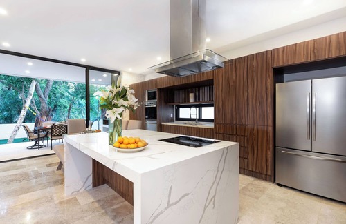 Our home is beautiful... Casa Aak(Aak is turtles in the Mayan language) has a wide open floor plan that leads to a beautifully designed kitchen. Maybe you want to spend the day with family and friends enjoying the outdoor living area. Your pool is located right off of the pocket sliding glass doors that disappear. The outdoor area has your own grill to cook whatever your taste desires. The first floor is perfect for your family to make lasting memories. Also, you will find on bedroom on this lower level with 2 twin beds.
