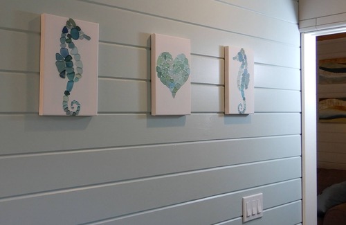 We did an extensive remodel of the cottage. The kitchen and bathroom are 100% new, and the floor plan has changed. If you've stayed with us before, or are reading earlier reviews note that the entrance to the bathroom is no longer off one of the bedrooms as it used to be, but now is situated more conventionally off the general living space. Also, changed: each bedroom now has a queen bed, with the one in the smaller bedroom being a Murphy bed so you can lift it out of the way if you need more open floor space for any reason.