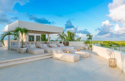 Beachfront villa on Tankah Bay, Tulum, with 8 bedrooms spread across 8,600 square feet. There are 6 double suites in the main villa and 2 four person apartments in the villa’s charming guest house. Nestled on a completely private Caribbean beachfront, this state of-the-art villa provides a 5-star resort feeling all to yourself.