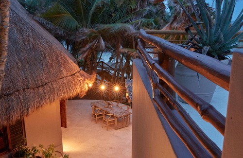 • Spaces to unwind: palapa‑roofed great room, sea‑view and rooftop terraces, 21‑foot ocean‑front pool, hammocks in the palms, and jungle nooks for quiet retreats.