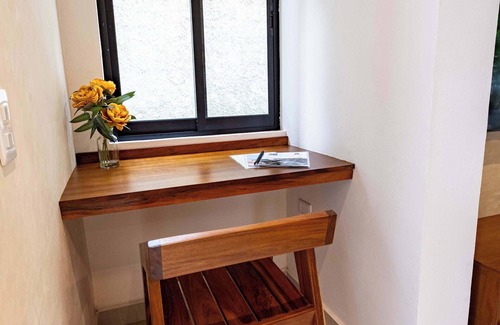 Out side you will find a 20 meter long pool with a shaded areas, tables, chairs and cots where you can sit or lay and relax. A smaller gym is also available to stay in shape. Temazcal sauna is available for complete relaxation. We also provide several grills in the resting areas in case that you want to make some delicious BBQ’s. The reception is available 24/7 in case you need any assistance.